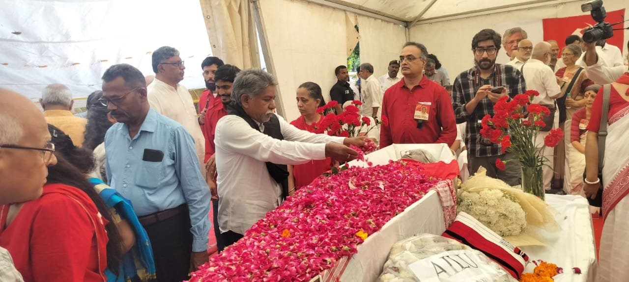 స్వర్ణోదయం ప్రతినిధి, న్యూఢిల్లీ, సెప్టెంబర్ 14: సీపీయం జాతీయ ప్రధాన కార్యదర్శి సీతారాం ఏచూరి మరణ వార్త తెలుసుకున్న ఎమ్మార్పీయస్ వ్యవస్థాపక అధ్యక్షుడు మంద కృష్ణమాదిగ ఢిల్లీ చేరుకొని శనివారం న్యూ ఢిల్లీలోని ఏకేజీ భవన్ లో సీతారాం ఏచూరి భౌతిక కాయానికి నివాళులు అర్పించారు. ఈ సందర్బంగా మంద కృష్ణమాదిగ మాట్లాడుతూ పీడిత ప్రజల సంక్షేమం కోసం జీవితాన్ని వెచ్చించి దేశ రాజకీయాల్లో వామపక్ష నేతగా అత్యంత కీలక పాత్ర పోషించిన సిపిఎం జాతీయ ప్రధాన కార్యదర్శి సీతారాం ఏచూరి మరణించడం అత్యంత బాధాకరమైన విషయం అన్నారు. ఆయన మృతి పీడిత ప్రజలందరికి తీరని లోటును మిగుల్చుతుందన్నారు. వామపక్ష భావజాలంతో విద్యార్థి దశ నుండే రాజకీయాల్లో ప్రవేశించి అంచెలంచెలుగా ఎదిగి దేశాన్ని ప్రభావితం చేసే నాయకుడిగా నిలిచారు. మేధావిగా, ఆర్థికవేత్తగా, వక్తగా, రాజకీయ విశ్లేషకుడిగా, రాజ్యసభ సభ్యుడిగా నిరంతరం పేద ప్రజల పక్షం వహించారు. ఎస్సీ వర్గీకరణ కోసం ఎమ్మార్పీఎస్ ఆధ్వర్యంలో జరిగిన ఉద్యమానికి మొదటి నుండి ఏచూరి మద్దతు తెలుపడమే కాకుండా డిల్లీ కేంద్రంగా జాతీయ స్థాయిలో ఎమ్మార్పీఎస్ కు ఎంతో సహకరించారు.రాజకీయ కార్యకలాపాలతో బిజీ షెడ్యుల్ ఉన్నప్పటికీ ఆయన కలవడానికి వెళ్లిన ప్రతి సందర్బంలో ఎంతో సమయం వెచ్చించి ఎస్సీ వర్గీకరణ కోసం అనేక సూచనలు, సలహాలు ఇచ్చారు. ఆగష్టు 1 వ తేదీన సుప్రీం కోర్టు ఎస్సీ వర్గీకరణను సానుకూలంగా ఇచ్చిన తీర్పుపై హర్షం వ్యక్తం చేస్తూ మాదిగ ప్రజల పక్షాన తన నిబద్ధతను మరొకసారి చాటుకున్నారు. ఎస్సీ వర్గీకరణకై మాదిగలు చేసిన పోరాటం ఫలవంతం కావడానికి ఏచూరి గారు అందించిన సహకారం మరువలేనిది.ఎస్సీ వర్గీకరణ పోరాటం అత్యంత కీలక దశకు చేరుకున్న సందర్భంగా తెలుగు వారైన ఏచూరి, సురవరం ఉభయ కమ్యూనిస్టు పార్టీలకు జాతీయ ప్రధాన కార్యదర్శిలుగా ఉండడం ఉద్యమానికి మరింత బలం చేకూరిందన్నారు. ఒకనాడు ఏక కాలంలో తెలుగు వారైన పుచ్చలపల్లి సుందరయ్య, చండ్ర రాజేశ్వరరావు ఉభయ కమ్యూనిస్టు పార్టీలకు నాయకత్వం వహించి పేద ప్రజల పక్షాన ఎలా నిలిచారో మళ్ళీ తెలుగు వారైన ఏచూరి, సురవరం అలాగే ప్రజల పక్షాన నిలిచి జాతీయ రాజకీయాల్లో తెలుగు ప్రజల గౌరవం మరింత పెంచారన్నారు. వామపక్ష నేతగా జాతీయ రాజకీయాల్లో పీడిత, తాడిత ప్రజల గొంతుక నిలబడిన ఏచూరికి యావత్ మాదిగ జాతీ ప్రజల పక్షాన ఎమ్మార్పీఎస్ ఘన నివాళులు తెలుపుతున్నదని అన్నారు.