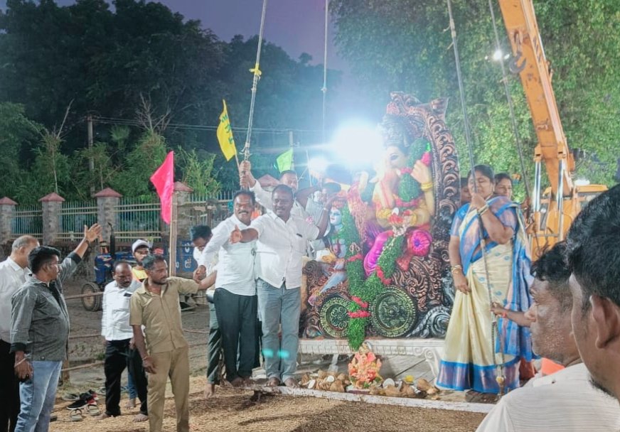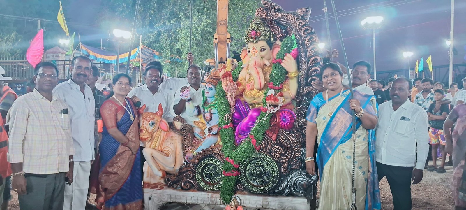 మండల యాదగిరి, స్వర్ణోదయం ప్రతినిధి, హుజురాబాద్: తొమ్మిది రోజులపాటు భక్తిశ్రద్ధలతో సాంప్రదాయబద్ధంగా పూజలు అందుకున్న విజ్ఞాలను పాపే వినాయకుడి నిమజ్జన కార్యక్రమం సోమవారం హుజూరాబాద్ లో ప్రజలు, భక్తులు భక్తిశ్రద్ధలతో ఘనంగా జరుపుకున్నారు. హుజురాబాద్ పట్టణంతో పాటు మండలంలో గ్రామ గ్రామాన గణేష్ నిమజ్జన వేడుకలు ఆయా గ్రామాల చెరువుల్లో ప్రజలు నిర్వహించారు. హుజురాబాద్ పట్టణంలో ఏర్పాటు చేసిన సుమారు 120 వినాయక మండపాల్లో వినాయకులను ఆయా మంటప నిర్వాహకులు వాహనాలను అందంగా తయారుచేసి డబ్బు చప్పులతో నృత్యాలు చేస్తూ పాటలు పాడుతూ భజనలు చేస్తూ ఊరేగింపుగా తీసుకొని పట్టణ శివారులోని కాకతీయ కాలువ లో నిమజ్జనం చేశారు. పట్టణ నడిబొడ్డున మున్సిపల్ ఆధ్వర్యంలో వినాయక నిమజ్జన ఉత్సవ విగ్రహాల ఊరేగింపు స్వాగత కార్యక్రమం ఏర్పాటు చేశారు. పట్టణంలోని వినాయకులకు రూట్ మ్యాప్ అందించి దాని ప్రకారం వినాయకులను వివిధ మార్గాల గుండా పట్టణంలో ఊరేగించి నిమజ్జనం చేశారు. నిమజ్జనం సందర్భంగా అందంగా అలంకరింపజేసిన వాహనాలకు మున్సిపల్ ఆధ్వర్యంలో బహుమతులు అందజేశారు. ఈ కార్యక్రమంలో మున్సిపల్ చైర్ పర్సన్ గందె రాధిక, వైస్ చైర్ పర్సన్ నిర్మల, మున్సిపల్ కమిషనర్ ఎస్ సమ్మయ్య,ఏఈ సాంబరాజు, మేనేజర్ భూపాల్ రెడ్డి, వివిధ శాఖల అధికారులు కళాకారులు మున్సిపల్ సిబ్బంది పాల్గొన్నారు. నిమజ్జనం ను కాకతీయ కాలువ వద్ద మున్సిపల్ చైర్ పర్సన్ గంధేరాధిక కొబ్బరికాయ కొట్టి ప్రారంభించారు. వినాయక నిమజ్జనం సోమవారం తెల్లవారుజాము వరకు జరిగింది.